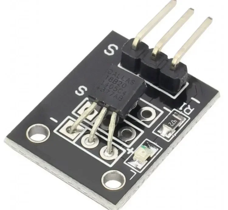DS18B20 модулі сандық температура датчигі ретінде сенімді, дәл және тұрақты өлшеу ұсынады. Модуль Arduino, ESP32, Raspberry Pi және басқа микроконтроллер жобаларымен үйлесімді. Компактты өлшемі мен қарапайым қосылу мүмкіндігі арқасында ол үй, өндіріс немесе білім беру жобаларында қолдануға өте ыңғайлы.